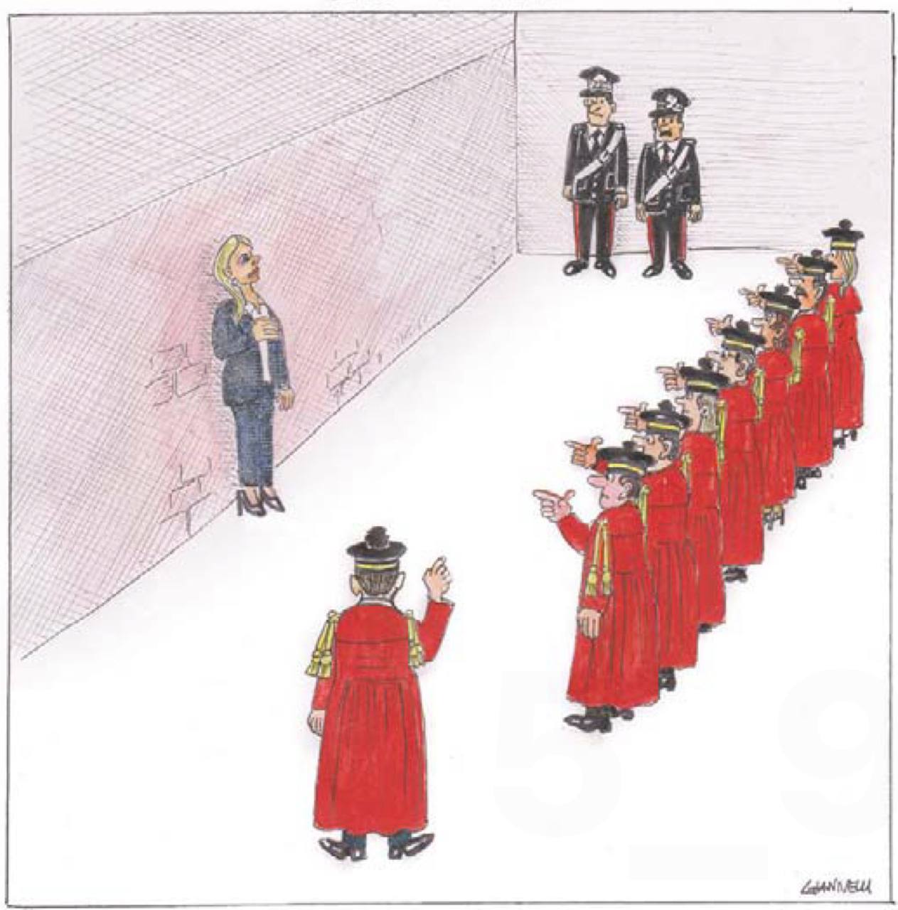 В Италии на днях пройдет референдум о судебной реформе, инициированный правительством Мелони. И хотя сама премьерша заявила, что не уйдет в отставку в случае провала голосования, Corriere Della Sera иллюстрирует это таким образом. То есть могут и расстрелять…