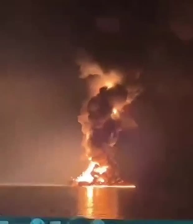 В районе Шарджа горит очередное судно пораженное иранцами.