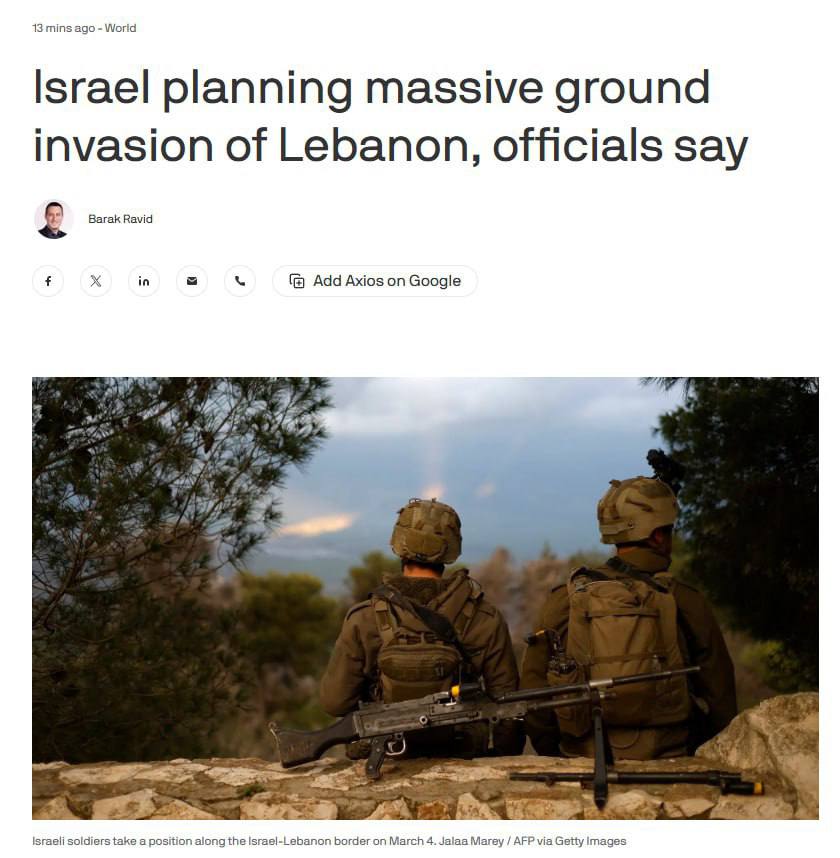 «Мы сделаем с югом Ливана то же, что сделали в Газе», — заявил высокопоставленный израильский чиновник Axios.