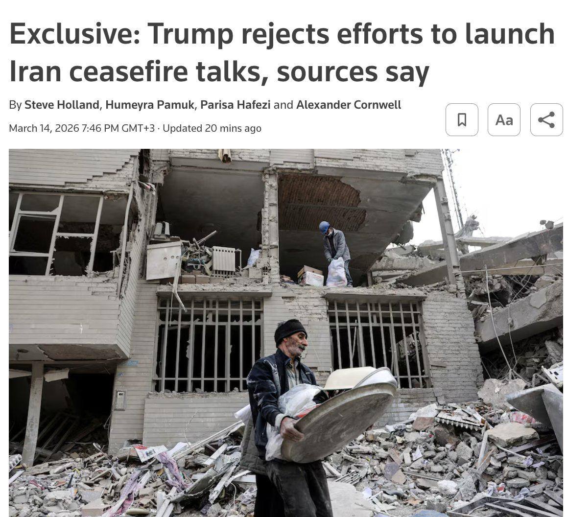 Reuters: США отвергли усилия стран Персидского залива по началу переговоров о прекращении огня с Ираном.
