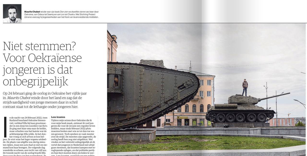 Презабавную и очень примитивную агитку опубликовала самая русофобская газета Нидерландов NRC. Некий Мориц Шабо с восторгом написал о том, как же высок дух украинской молодежи, и призвал голландскую молодежь брать пример с боевитых украинцев.