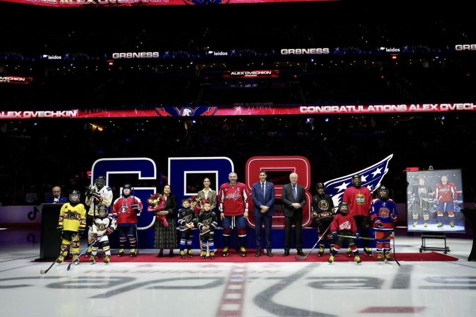 Церемония прошла перед игрой с «Виннипегом», на ней также присутствовали мать, супруга и дети 40-летнего хоккеиста. Во время самой встречи Овечкин отличился — теперь на его счету 908 голов в «регулярках» (абсолютный рекорд).