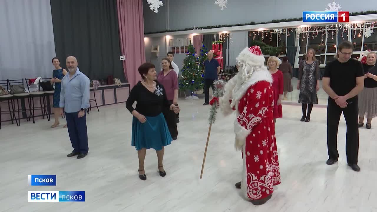 Как отмечать Новый год активно в любом возрасте, узнал почетный пенсионер России - Дед Мороз. Ему больше 300 лет и за все это время он так и не научился танцевать. По силам ли это морозному старцу, выясняла съемочная группа "Вести-Псков" вместе с танцевальным клубом "Грация".