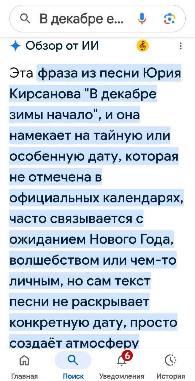 Т.е. ИИ, даже установив, что это строки из песни Ю. Кирсанова, посвященной совершенно конкретному контексту, отгружает и всю эту чушь про 'ожидание волшебного праздника' и т.п.