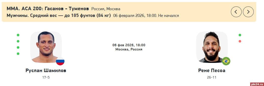 6 февраля в 18:00 профессиональный боец из Великих Лук Руслан Шамилов проведёт поединок на международном турнире по ММА.