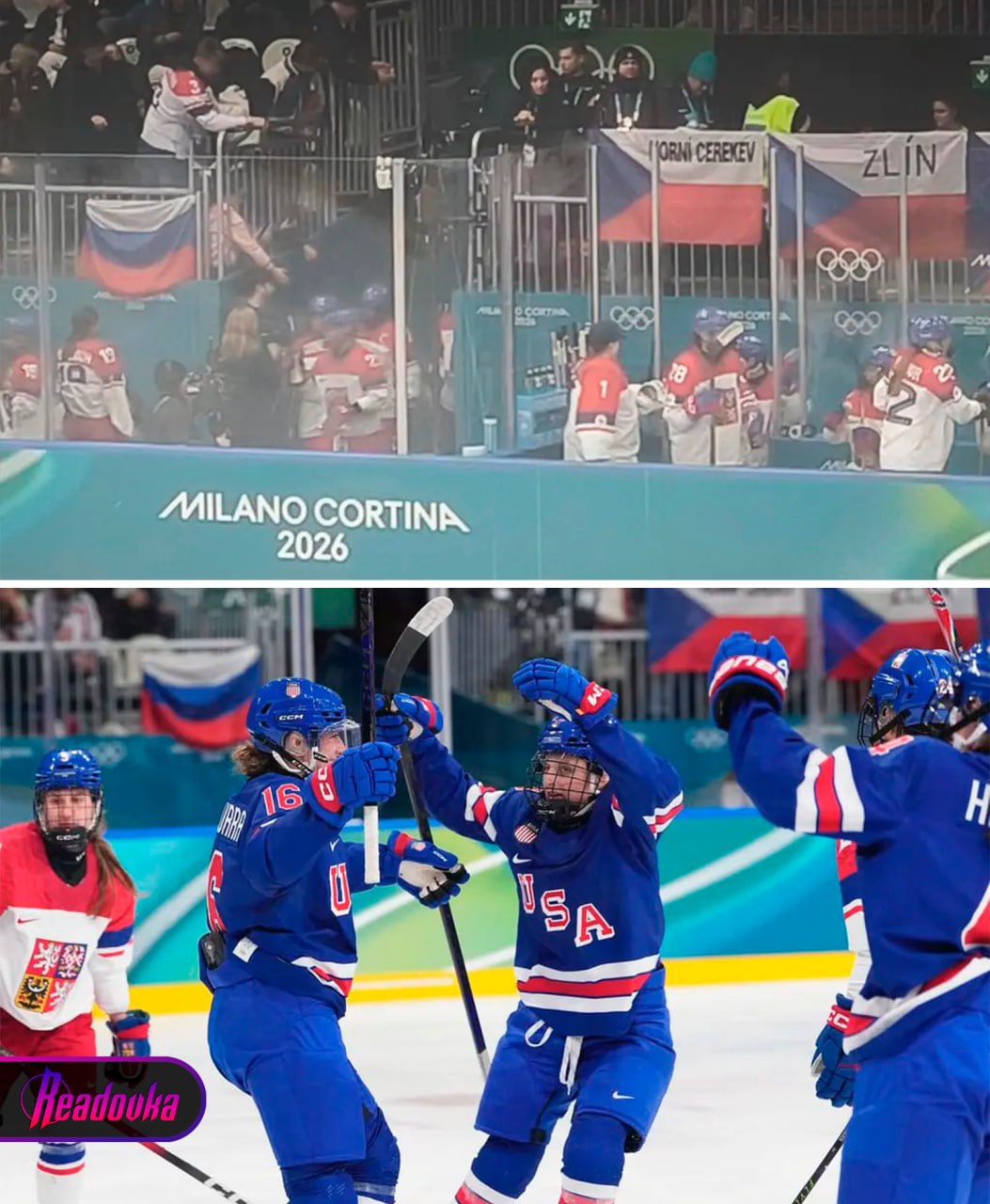 Флаг России заметили на Олимпиаде в Милане — его вывесили рядом со скамейкой запасных чешских хоккеисток