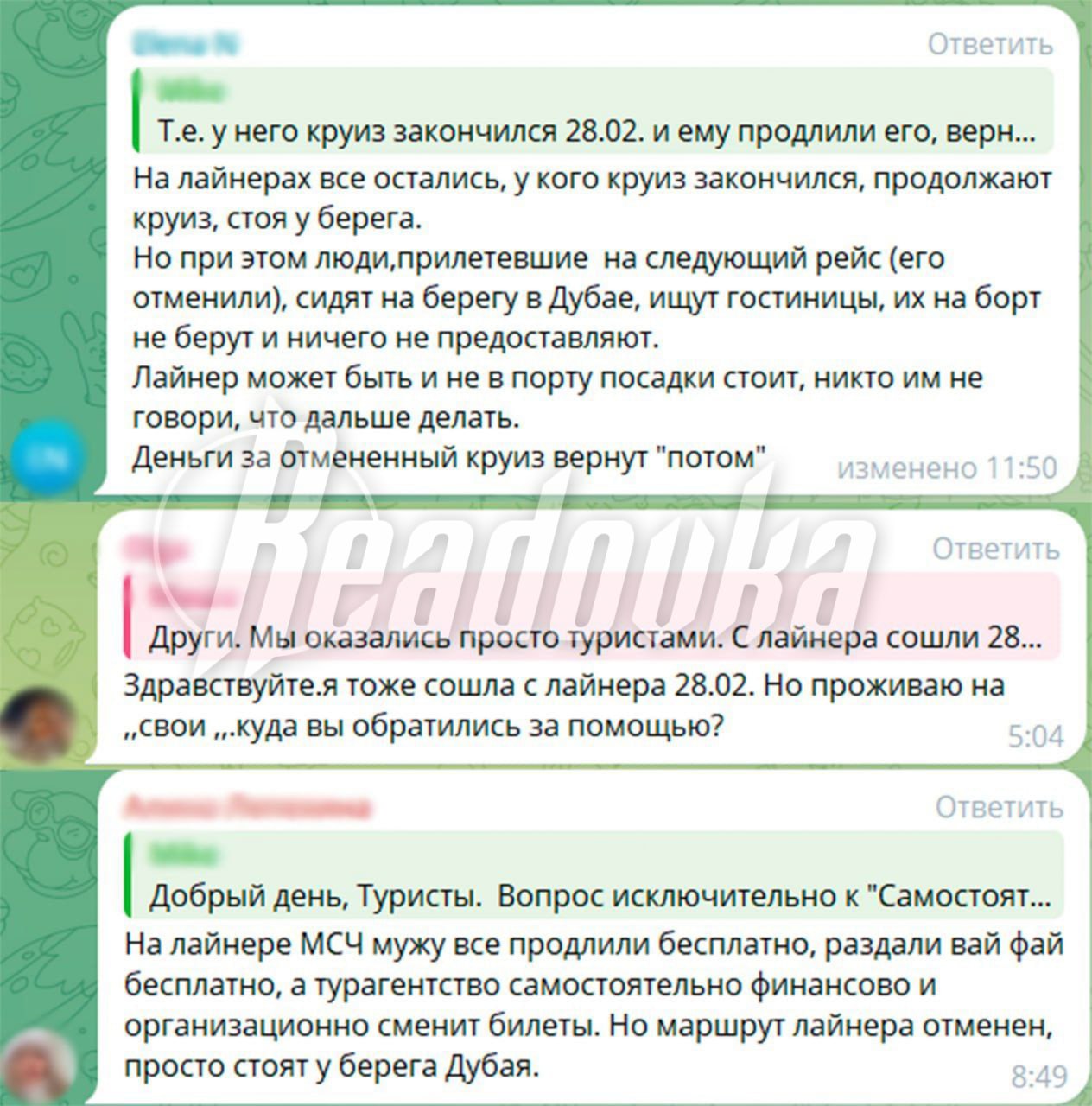 Пятизвездочный круизный лайнер MSC должен был отчалить от берегов ОАЭ в день, когда США и Израиль напали на Иран. Судно застряло в порту Дубая, но пассажирам не дают никаких инструкций и гарантий — только повторяют, что находиться на корабле для них безопаснее всего. Сейчас лайнер функционирует в режиме плавучего отеля, а постояльцам рекомендуют обратиться в консульство самостоятельно, сообщают Readovka туристы. Экипаж опрашивает пассажиров об их запланированных вылетах, но информации о новых авиарейсах не дает.
